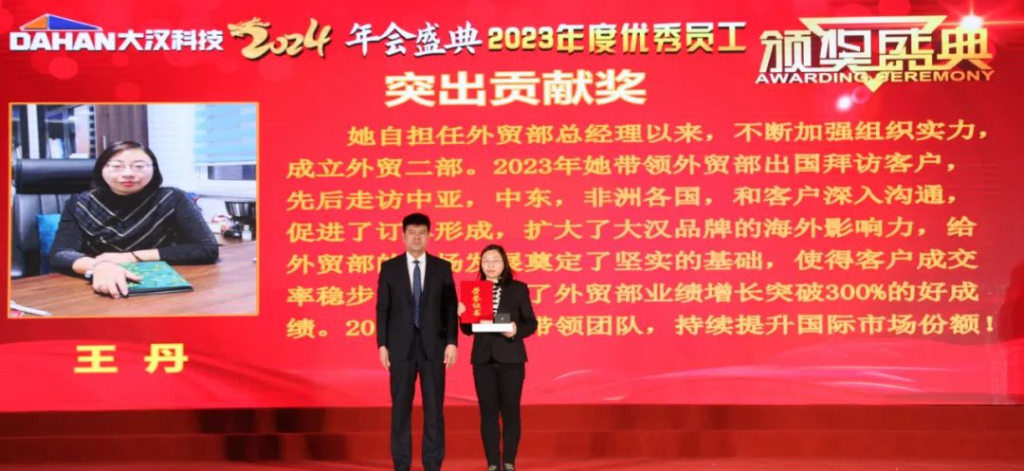 一程風(fēng)雨,一程陽(yáng)光;一路耕耘,一路收獲;是一載一載的風(fēng)華,鑄就了大漢科技的參天氣魄,是一個(gè)又一個(gè)的榮耀,串聯(lián)起大漢科技的恢弘篇章。在隆重的頒獎(jiǎng)環(huán)節(jié),分別對(duì)評(píng)選出的公司突出貢獻(xiàn)獎(jiǎng)、十大人物、銷售標(biāo)兵、優(yōu)秀業(yè)務(wù)員以及專業(yè)技能獲得者進(jìn)行了獎(jiǎng)勵(lì)。