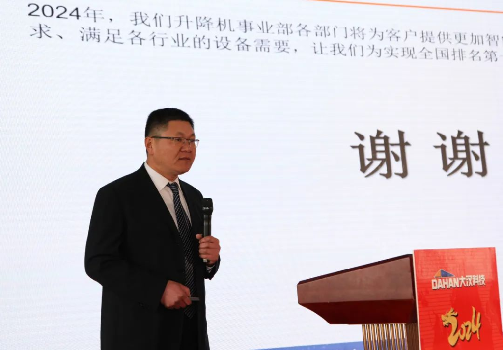 當(dāng)清晨的第一縷陽(yáng)光點(diǎn)綴起錦繡山河的壯美和云霧潤(rùn)蒸的泉韻,大漢科技2024年會(huì)盛典在希望和美好的期許中如約而至。2024年2月1日,大漢科技2024年會(huì)盛典隆重舉行,公司董事長(zhǎng)康與宙、常務(wù)副總裁李俊池以及600多名員工參加了年會(huì)盛典。在當(dāng)前智能化飛速發(fā)展的技術(shù)迭新時(shí)代,圍繞建機(jī)行業(yè)數(shù)字化、工業(yè)化、智能化相融合的新趨勢(shì),大漢科技作為行業(yè)頭部企業(yè)致力于推動(dòng)公司智能制造、數(shù)字轉(zhuǎn)型,用匠心和專業(yè)打造的智能產(chǎn)品聯(lián)動(dòng)智慧未來(lái),構(gòu)建產(chǎn)業(yè)發(fā)展新格局,持續(xù)在奮進(jìn)新征程中攻堅(jiān)克難,銳意進(jìn)取,持續(xù)保持中國(guó)建機(jī)行業(yè)前三強(qiáng)。憶往昔,崢嶸歲月。在千村寥落、狼煙四起的戰(zhàn)爭(zhēng)年代,需要大好華夏兒女精忠報(bào)國(guó);看今朝,信心滿懷。在山河遠(yuǎn)闊、國(guó)泰民安的和平時(shí)代,更需要新的一代人精忠報(bào)國(guó)。一曲由升降機(jī)事業(yè)部選送的大合唱《精忠報(bào)國(guó)》,瞬間點(diǎn)燃起在座的每一位大漢員工的豪邁激情,激勵(lì)我們每個(gè)人都要愛祖國(guó)、愛大漢、愛崗位。在市場(chǎng)形勢(shì)發(fā)生巨大變化,競(jìng)爭(zhēng)異常激烈的2023年,銷售精英一路披荊斬棘、奮力拼搏,把銷售團(tuán)隊(duì)業(yè)績(jī)潛力充分發(fā)揮出來(lái)。公司常務(wù)副總裁李俊池李總對(duì)2023年的銷售工作進(jìn)行了全面回顧,并分享了2024年的銷售目標(biāo)、計(jì)劃和措施,勉勵(lì)大漢全體銷售精英無(wú)懼挑戰(zhàn)、奮勇向前,創(chuàng)造新的業(yè)績(jī)!在全球經(jīng)濟(jì)一體化和國(guó)家"一帶一路"總規(guī)劃大背景下,大漢科技用智能創(chuàng)造價(jià)值,用智慧聯(lián)動(dòng)未來(lái),強(qiáng)力推出高性價(jià)比的DH系列塔式起重機(jī)和智能施工升降機(jī)與世界接軌,與世界融合,成長(zhǎng)為一家具有全球化戰(zhàn)略布局的行業(yè)領(lǐng)軍企業(yè),而外貿(mào)出口業(yè)務(wù)在2023年更是實(shí)現(xiàn)國(guó)際市場(chǎng)銷售新突破。外貿(mào)部負(fù)責(zé)人王丹王總分享了公司外貿(mào)出口的總結(jié)以及新銷售目標(biāo)、措施。通過(guò)分享,我們了解到大漢科技已與全球50多個(gè)國(guó)家和地區(qū)的經(jīng)銷商建立合作共贏機(jī)制,為這些國(guó)家和地區(qū)的建設(shè)項(xiàng)目提供智能化、數(shù)字化、綠色化以及高性價(jià)比的建筑機(jī)械產(chǎn)品及系統(tǒng)解決方案,祝愿外貿(mào)團(tuán)隊(duì)持續(xù)開創(chuàng)融合共贏新局面,持續(xù)開創(chuàng)國(guó)際市場(chǎng)新格局!