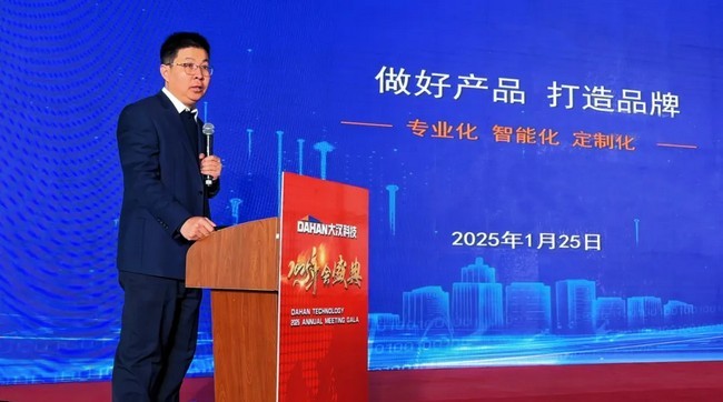 公司董事長康與宙康總在年會盛典上作重要講話,康總說在2024年大漢科技加大核心技術(shù)研發(fā)投入,持續(xù)提升技術(shù)創(chuàng)新能力,通過全體員工的共同努力,在廣大經(jīng)銷商和客戶的支持下,國內(nèi)市場份額持續(xù)保持在整個行業(yè)的前三位。大漢塔機、升降機產(chǎn)品在多個核電項目、跨江跨海大橋項目、火電項目、超高層項目進行使用,并且在國內(nèi)一些標志性建筑、地標性建筑得到廣泛應(yīng)用。特別是2500噸米風電大塔產(chǎn)品的全新研發(fā)和投產(chǎn),實現(xiàn)了大型塔機研發(fā)的新高度、新水平。康總表示在新的一年里,大漢科技將以“技術(shù)創(chuàng)新為引領(lǐng),持續(xù)推進塔機大型化,產(chǎn)品智能化、綠色化、高端化、國際化的開發(fā)與制造水平;持續(xù)推進國內(nèi)、國際銷售市場雙循環(huán)發(fā)展;持續(xù)推進由高性價比向高質(zhì)量性價比向高端品牌、國際品牌發(fā)展戰(zhàn)略”。通過技術(shù)創(chuàng)新,智能制造+工匠精神,技術(shù)+金融+售后服務(wù),品牌提升,新產(chǎn)品上市(使整個產(chǎn)品線更加豐富、個性化),10大應(yīng)用領(lǐng)域(包括橋梁、電力、鐵路、公路、機場、港口、石化、造船、場館、超高層)以及國際市場等方面實現(xiàn)突破和發(fā)展。大漢科技2025年會盛典在充滿團結(jié)協(xié)作精神、增強團隊意識的大合唱《眾人劃槳開大船》歌曲中落下帷幕。向未來,賦新生。2025年,大漢科技將聚焦技術(shù)創(chuàng)新+新品上市,聚焦智能制造+工匠精神,聚焦技術(shù)+金融+售后服務(wù),聚焦大漢科技品牌提升,聚焦國內(nèi)十大領(lǐng)域應(yīng)用,聚焦國際市場新突破,全力開啟大漢科技新的發(fā)展篇章!