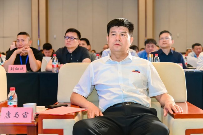 公司董事長康與宙康總在大會(huì)上致開幕辭,康總首先對(duì)主辦方“中國建筑業(yè)協(xié)會(huì)建筑安全與機(jī)械分會(huì)”能夠把這樣高規(guī)格、高水平的行業(yè)交流盛會(huì)放在濟(jì)南召開表示最誠摯的感謝!對(duì)蒞臨會(huì)場(chǎng)的各位領(lǐng)導(dǎo)、各位專家、各位行業(yè)同仁表示最熱烈的歡迎!康總介紹說大漢科技作為深耕建筑起重機(jī)械行業(yè)的領(lǐng)軍品牌、頭部企業(yè),是中國塔機(jī)行業(yè)國家標(biāo)準(zhǔn)修訂單位、國家級(jí)智能制造示范項(xiàng)目,國家級(jí)高新技術(shù)企業(yè),年生產(chǎn)能力過萬臺(tái),連續(xù)多年在企業(yè)規(guī)模、銷售臺(tái)量、市場(chǎng)占有率等方面保持中國建筑起重機(jī)械行業(yè)前三名。在全球經(jīng)濟(jì)一體化和國家大力推進(jìn)高質(zhì)量共建“一帶一路”走深走實(shí)大背景下,大漢科技用智能創(chuàng)造價(jià)值,用智慧聯(lián)動(dòng)未來,強(qiáng)力推出高性價(jià)比的DH系列塔式起重機(jī),動(dòng)臂塔機(jī)和新二代智能梯、井道梯、貨用梯、曳引梯、施工升降機(jī)平臺(tái)等系列產(chǎn)品,特別是2500噸米風(fēng)電大塔的全新研發(fā)和投產(chǎn)銷售,實(shí)現(xiàn)了大型塔機(jī)研發(fā)制造的新水平。同時(shí),大漢科技不斷深化國際品牌戰(zhàn)略,通過近15年國際市場(chǎng)的持續(xù)耕耘,大漢科技產(chǎn)品已出口至全球50多個(gè)國家與地區(qū),并與重點(diǎn)區(qū)域經(jīng)銷商建立合作共贏機(jī)制與合作伙伴關(guān)系,實(shí)現(xiàn)了國內(nèi)國際雙循環(huán),成長為一家具有全球化戰(zhàn)略布局的行業(yè)領(lǐng)軍企業(yè)。康總最后說此次交流盛會(huì),既是一場(chǎng)前沿技術(shù)的“博覽會(huì)”,更是一次行業(yè)智慧的“集結(jié)號(hào)”。作為本次會(huì)議的協(xié)辦單位,大漢科技深知智能建造的星辰大海,絕非一家之力可以抵達(dá),它需要技術(shù)共享的胸懷、生態(tài)共建的格局和開放共贏的信念。期待與各位領(lǐng)導(dǎo)、專家、同仁展開深度對(duì)話,我們相信,唯有打破壁壘、整合資源、優(yōu)勢(shì)互補(bǔ),才能讓新技術(shù)走出實(shí)驗(yàn)室,讓新設(shè)備扎根施工現(xiàn)場(chǎng),讓智能建造的愿景真正照進(jìn)現(xiàn)實(shí)。