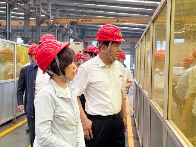 會(huì)后,康總陪同中國建筑業(yè)協(xié)會(huì)副會(huì)長吳慧娟、中國建筑業(yè)協(xié)會(huì)建筑安全與機(jī)械分會(huì)會(huì)長馬劍忠及與會(huì)代表一行赴大漢科技智能化生產(chǎn)基地參觀,深入了解行業(yè)領(lǐng)先的大漢智能化生產(chǎn)線以及大漢智能化產(chǎn)品,對(duì)巍峨聳立的DH2500-200超大型風(fēng)電塔機(jī)深感震撼,紛紛為大漢科技先進(jìn)的塔機(jī)、施工升降機(jī)產(chǎn)品智能制造工藝點(diǎn)贊,為大漢科技助推建筑機(jī)械行業(yè)高質(zhì)量發(fā)展表示高度贊許!
