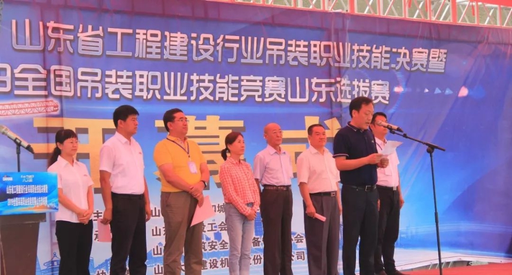 16日上午8:30分競(jìng)賽開(kāi)幕式正式拉開(kāi)帷幕,山東省建筑安全與設(shè)備管理協(xié)會(huì)會(huì)長(zhǎng)杜海濱主持開(kāi)幕式,來(lái)自全省16城市的16支參賽隊(duì)和裁判組舉行了入場(chǎng)儀式,蒞臨開(kāi)幕式的主要領(lǐng)導(dǎo)和嘉賓有:中國(guó)建筑業(yè)協(xié)會(huì)機(jī)械管理與租賃分會(huì)會(huì)長(zhǎng)張燕娜、北京起重吊裝及拆卸工程專(zhuān)業(yè)技術(shù)委員會(huì)主任孫曰增、山東省住房和城鄉(xiāng)建設(shè)廳執(zhí)法監(jiān)察局二級(jí)調(diào)研員張英明、山東省建設(shè)工會(huì)副主席邵永立、山東省建設(shè)工會(huì)四級(jí)調(diào)研員賀培港等,公司董事長(zhǎng)康與宙,總經(jīng)理張茹登上主席臺(tái)參加開(kāi)幕式。主辦、承辦和協(xié)辦單位的相關(guān)領(lǐng)導(dǎo)、行業(yè)專(zhuān)家,參賽選手、大賽嘉賓及現(xiàn)場(chǎng)服務(wù)人員共計(jì)160余人共同見(jiàn)證了這場(chǎng)規(guī)格高、專(zhuān)業(yè)性強(qiáng)的競(jìng)技大賽。