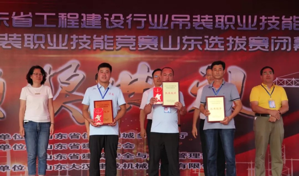 經(jīng)過(guò)激烈的角逐,“大漢杯”山東省工程建設(shè)行業(yè)吊裝職業(yè)技能決賽暨2019全國(guó)競(jìng)賽山東選拔賽圓滿閉幕。16支參賽隊(duì)75名專(zhuān)業(yè)選手通過(guò)理論考試和實(shí)操比武,山東濟(jì)南市代表隊(duì)、青島市代表隊(duì)、日照市代表隊(duì)分別摘得技能競(jìng)賽團(tuán)體獎(jiǎng)前三強(qiáng)。山東大漢建設(shè)機(jī)械股份有限公司獲得山東省建設(shè)工會(huì)、山東省建筑安全與設(shè)備管理協(xié)會(huì)頒發(fā)的“突出貢獻(xiàn)獎(jiǎng)”。來(lái)自濟(jì)南市代表隊(duì)的李寶順從參賽的眾多塔機(jī)頂尖高手脫穎而出,憑借精湛的技術(shù)和穩(wěn)定的臨場(chǎng)發(fā)揮,摘得本此吊裝大賽第一名的桂冠,并獲得由山東省總工會(huì)授予的“山東省五一勞動(dòng)獎(jiǎng)?wù)隆保粷?jì)南市代表隊(duì)的劉順卿、董波,日照市代表隊(duì)的李高華分別獲得二等獎(jiǎng);青島市代表隊(duì)的馬云勝等15名選手獲得三等獎(jiǎng)。