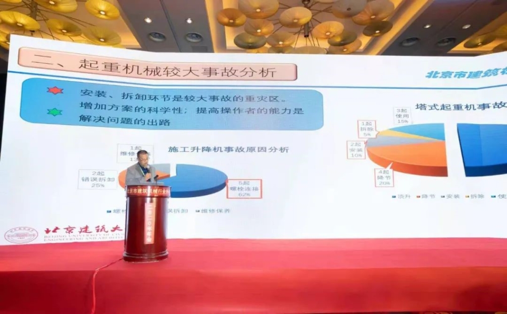 論壇環(huán)節(jié),《建筑機械》雜志社翟會昆社長主持論壇,圍繞當前“兩建機”行業(yè)存在的設(shè)備使用年限和安全管理問題舉辦北京市第一屆塔式起重機安全(北京)高峰論壇。北京建筑大學、建筑施工專業(yè)委員會王凱暉專家發(fā)表了《行業(yè)合力、構(gòu)筑安全》主題發(fā)言,王凱暉副會長從起重機械和建筑安全的關(guān)系、起重機械較大事故分析、北京地區(qū)起重機械行業(yè)近六年更新?lián)Q代和購置特點、租賃行業(yè)發(fā)展特點等方面從宏觀和微觀角度細致分析。