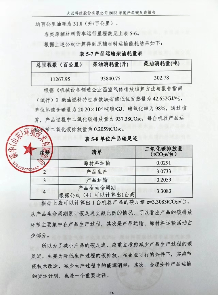 大漢科技股份有限公司產(chǎn)品碳足跡報(bào)告(2023年度)